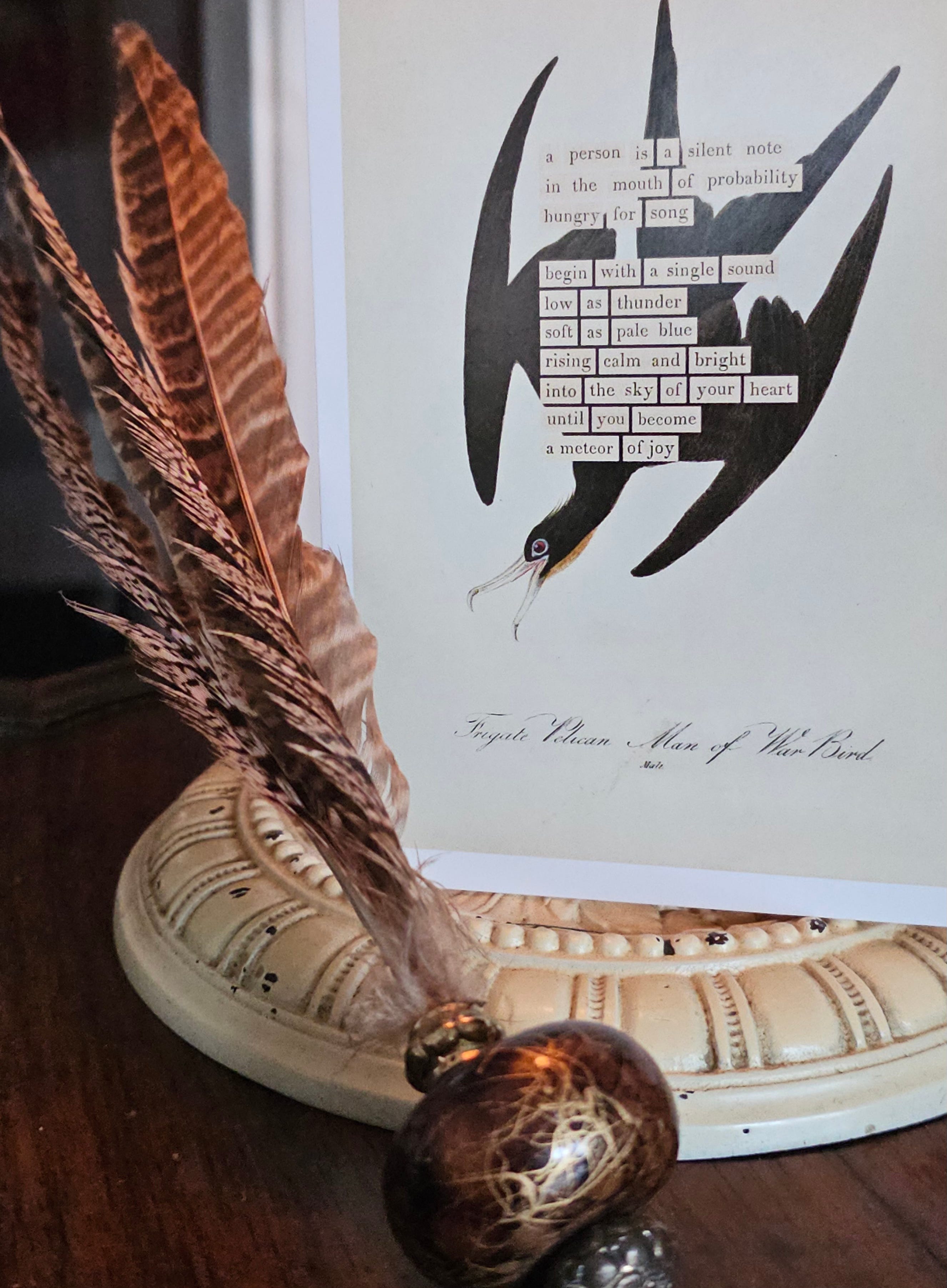 Still, we do awake each day. And that is not nothing. Indeed, it is everything. Popova moves the words of Audubon’s description of the Frigate Pelican around and whispers the challenge to begin. Just begin to become you, “with a single sound low as thunder.” We can do that. We can weather the repercussions. We can stare down the looks, the “What’s-the-matter-with-you?” interruptions. One wee sound at a time until we begin to hear our own selves, to know ourselves again. (Wait. Did life ever truly allow me to know myself long, long ago?) We - I - have only one life and only one song is mine and mine alone. Have I yet found it? Is there more yet to learn, more to sing? Keep looking. Keep exploring. Keep reflecting. Being… And one day, perhaps, even a “meteor of joy.”